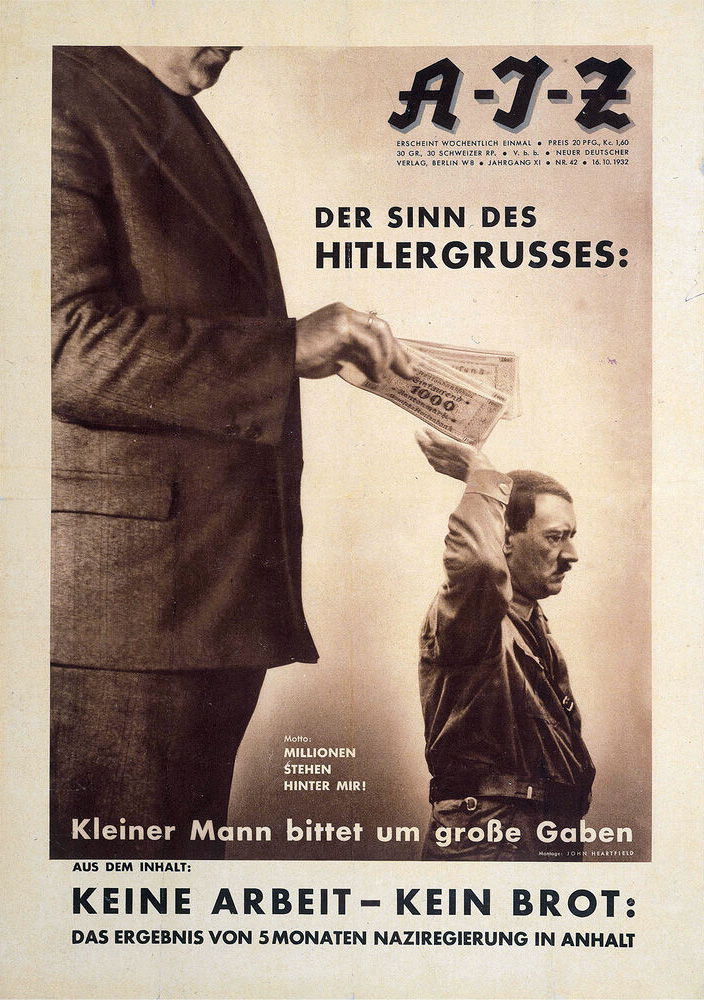 뮌헨의 응용미술학교와 베를린의 미술공예학교에서 영화, 사진, 디자인 등을 공부한 존 하트필드의 본격적인 포토몽타주 작업은 1924년 빌리 뮌제베르크(Willi Muenzenberg)에 의해 창간된 반체제 잡지 <AIZ(Arbeiter Illustrierte Zeitung)>를 통해 이루어졌다. <AIZ>는 ‘노동자들을 위한 화보 신문’이라는 뜻을 갖고 있다.