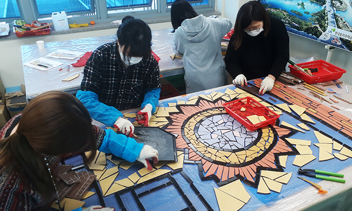 파주 운정호수공원과 소리천이 이어지는 첫 번째 다리인 가온교 산책로 옆 벽면에 설치된 이 작품은 중앙 부분의 페인팅 벽화와 좌우 벽면의 모자이크 타일기법으로 제작되었다.