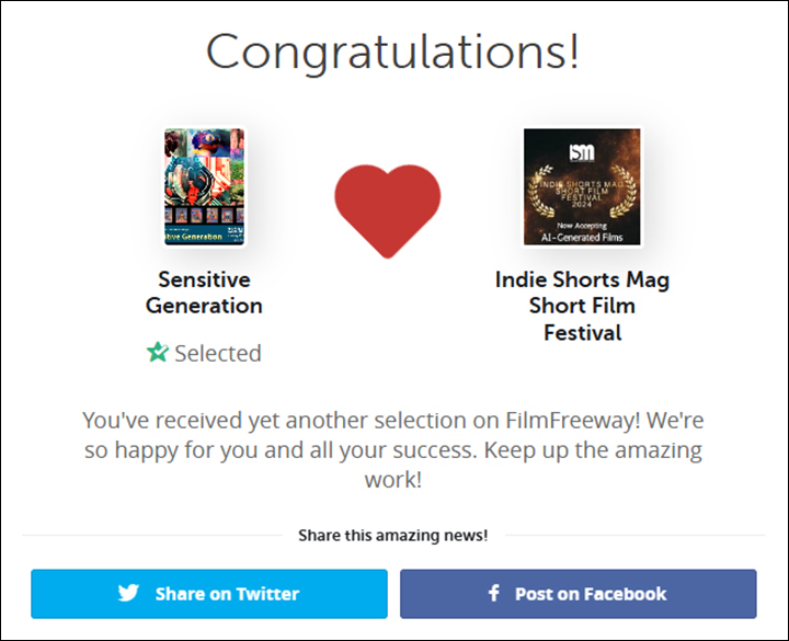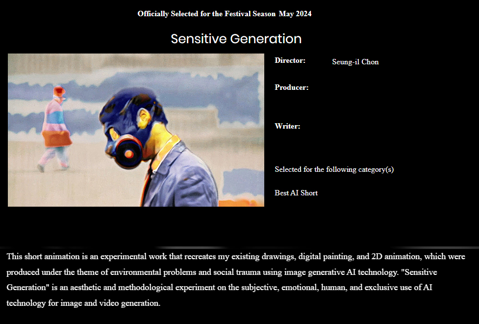 뉴스아트 김시우 기자 | 전승일 감독의 신작 ‘생성형 인공지능(Generative AI) 애니메이션’ <Sensitive Generation>이 해외영화제에서 연이어 공식 상영작으로 선정되었다. 전승일 감독의 독창적인 제너