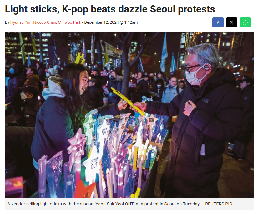 Light sticks, K-pop beats dazzle Seoul protests | New Straits Times
