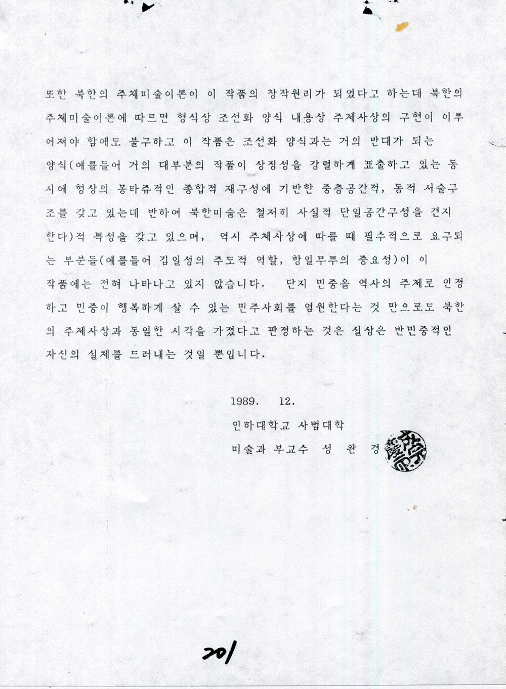 [걸개그림 민족해방운동사 아카이브] "민족해방운동사 이적성향 감정서" (1989.08/서울대공전술연