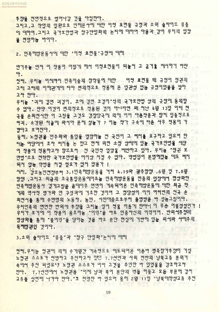 [걸개그림 민족해방운동사 아카이브] "고 성완경 교수 의견서" (1989.12)