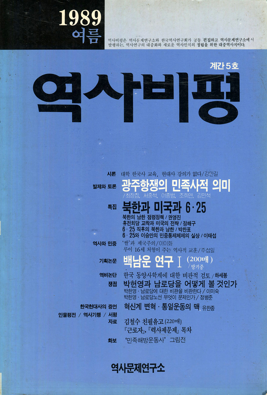 격월간 미술잡지 통권10호(1989년 11.12월호) 기획특집 ① 전개과정: 80년대 한국사회의 변동과 미술운동 (심광현)② 소집단운동: 시대와 역사현실을 함께 호흡하는 집단창작 (최석태)③ 현실주의미