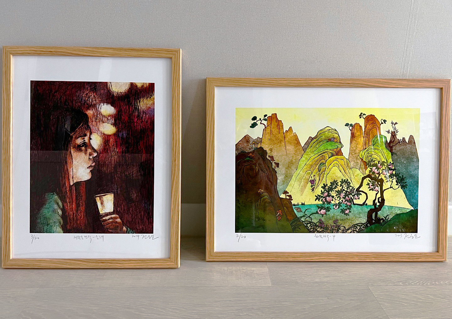 작품 크기는 액자 포함 캔버스 8호~10호 크기입니다.