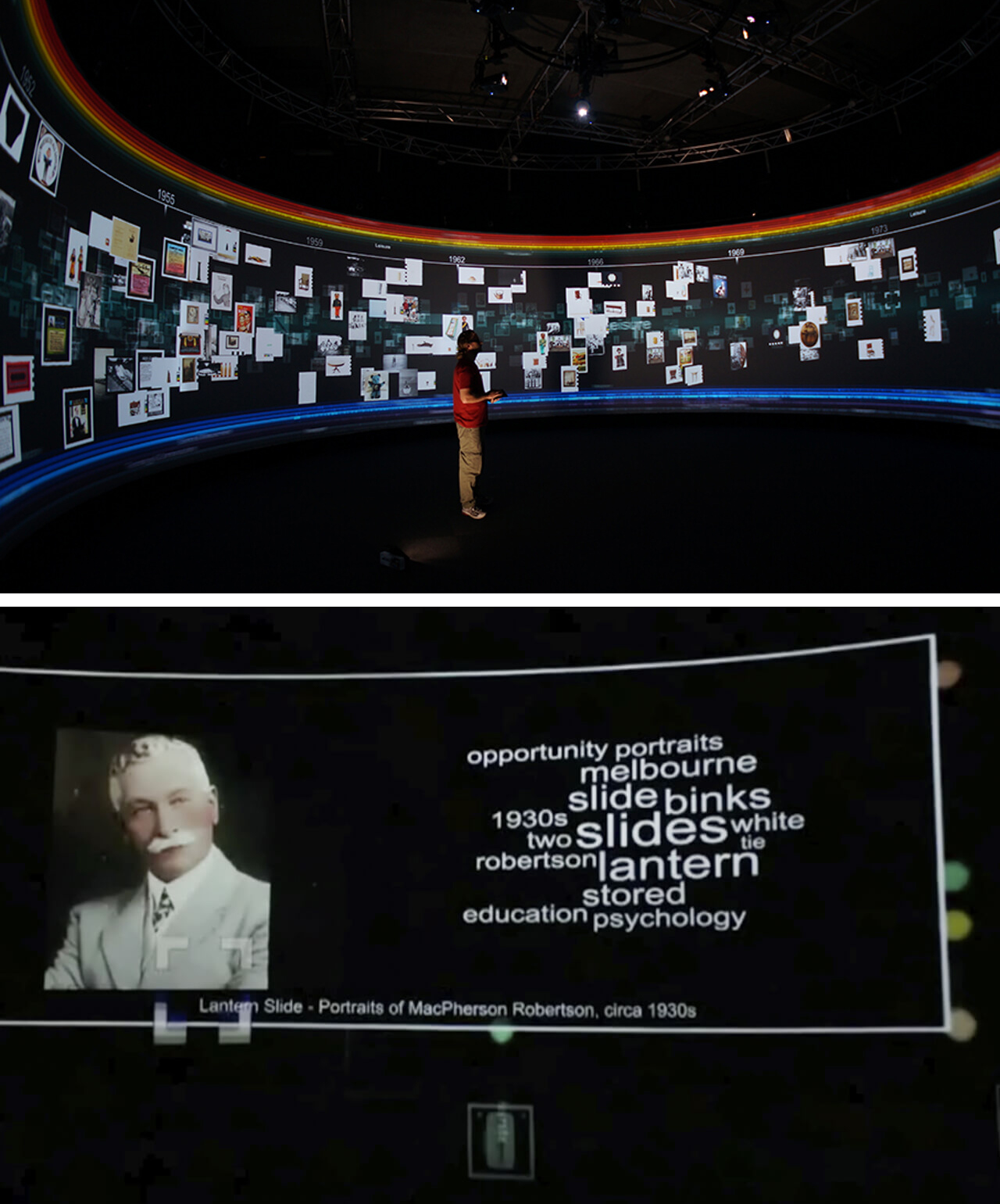 스티븐 스필버그 감독의 2002년 SF영화 ‘마이너리티 리포트’에 등장하는 ‘프리-크라임(pre-crime)’ 시스템의 인터페이스를 연상시키는 360도 대형 인터랙티브 프로젝션 설치미술 <mARChive>는 Sarah Kenderdine, David Chesworth, Dennis Del Favero, Tim Hart 등과 함께 2014년 제프리 쇼가 공동 제작한 작품으로 멜버른 빅토리아 뮤지엄(Museums Victoria)의 소장품 8만여 점을 기반으로 구성된 참여형 집단형 체제(participatory and collective framework)이다.