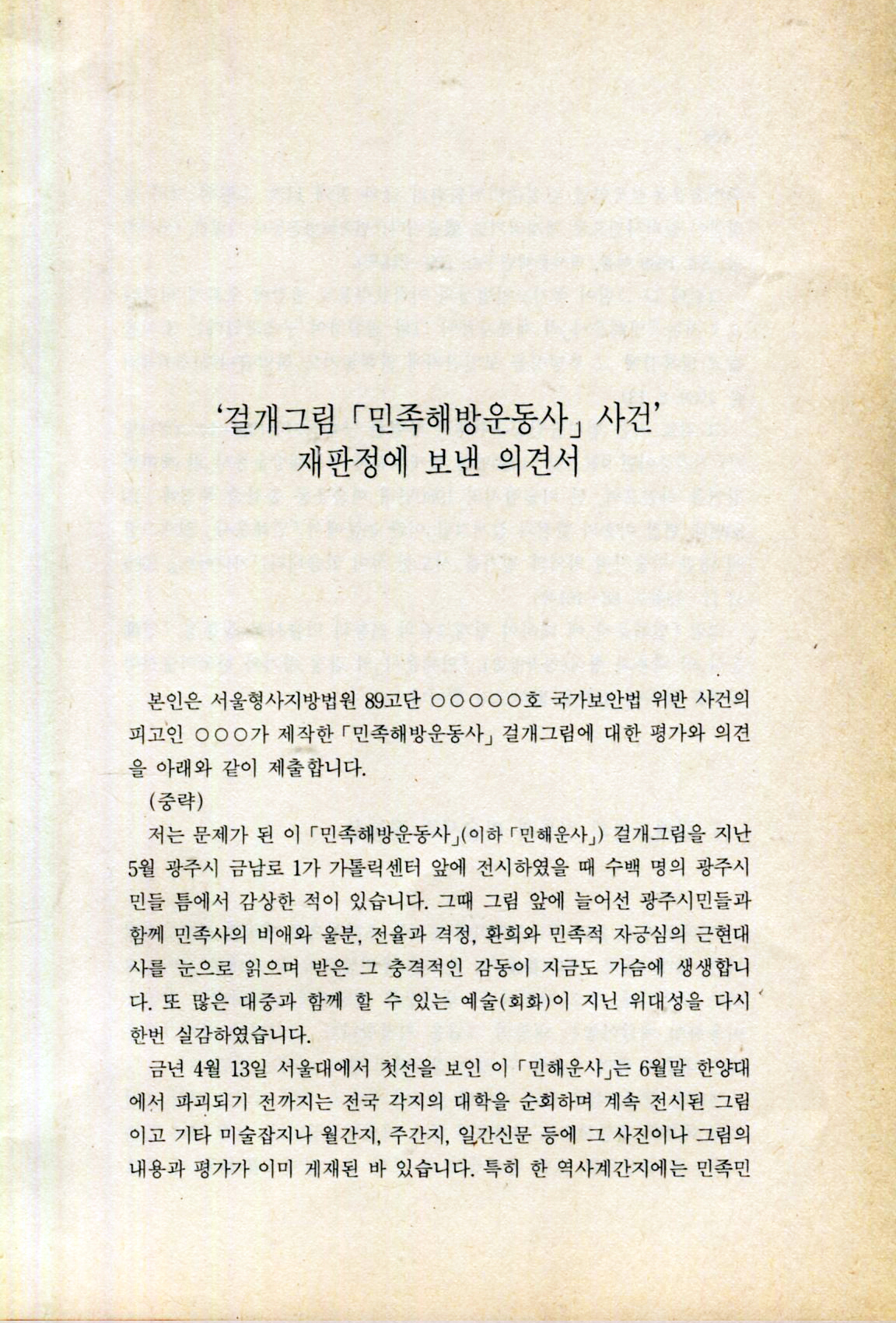 재판정에 보낸 의견서