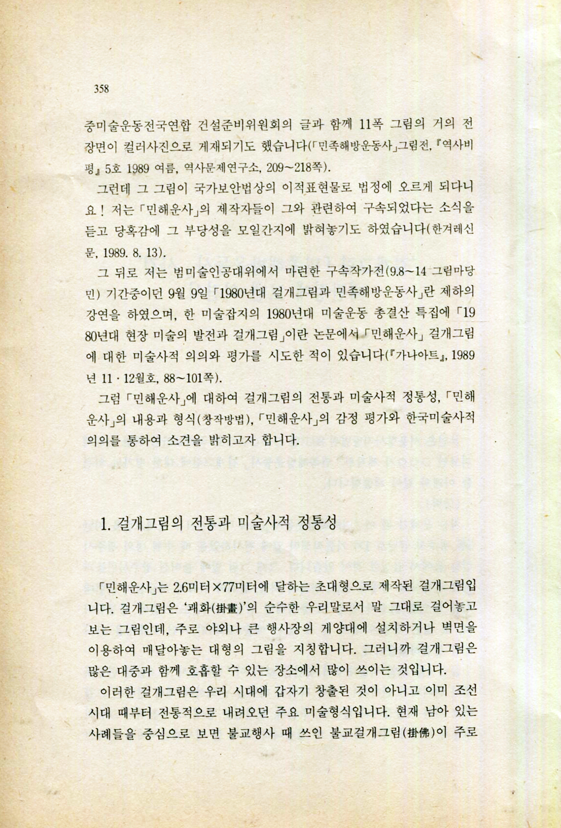 [걸개그림 민족해방운동사 아카이브] <우리시대 우리미술>(이태호 지음/풀빛/1991)