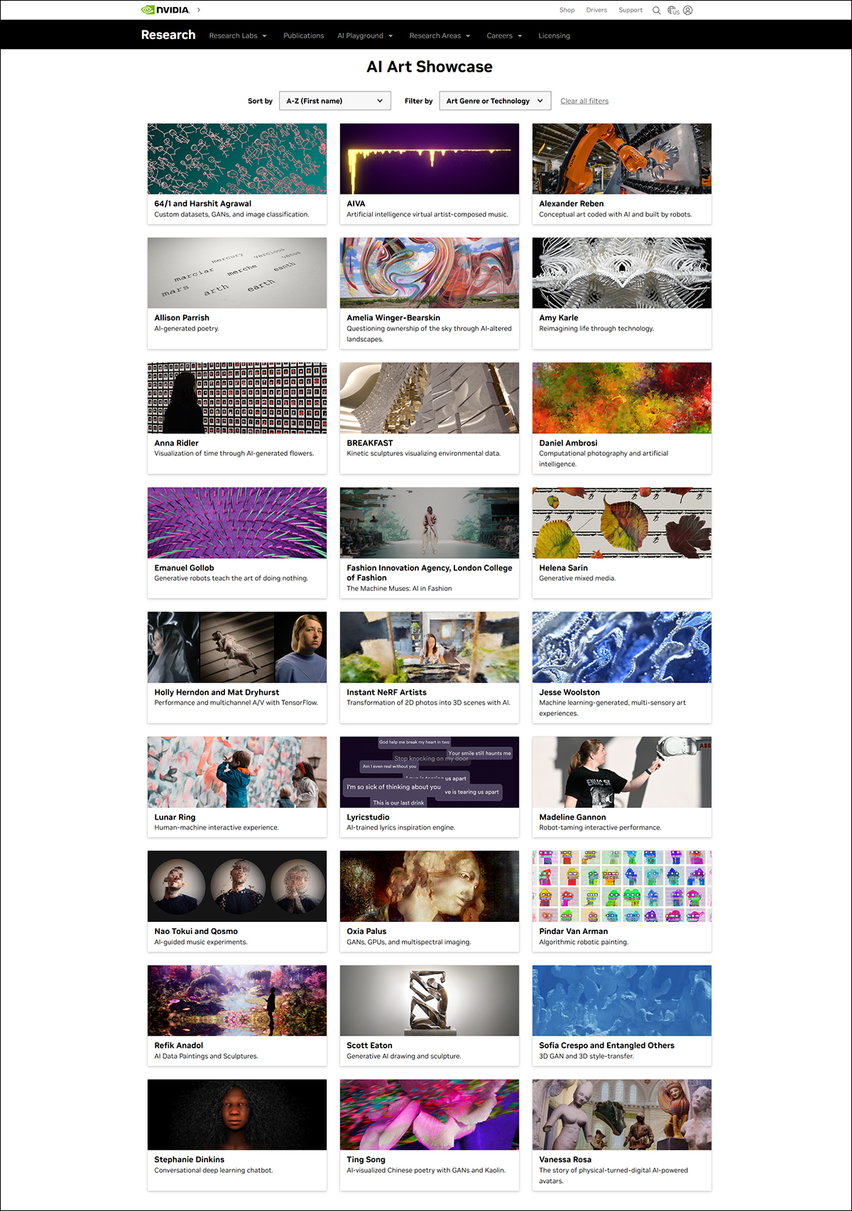 2월 20일부터 3월 5일까지 크리스티 록펠러 센터 갤러리에서 동시 전시와 함께 진행되는 이번 온라인 경매에는 레픽 아나돌(Refik Anadol), 클레어 실버(Claire Silver), 사샤 스타일스(Sasha Stiles), 핀다르 반 아르만(Pindar Van Arman), 홀리 헌든(Holly Herndon) & 맷 드라이허스트(Mat Dryhurst), 해럴드 코헨(Harold Cohen) 등 기존 AI 작가부터 신진 작가까지 다양한 AI 작가들의 높은 인기를 자랑하는 작품들이 출품될 예정입니다. 또한, 엔비디아 AI 아트 갤러리 소속 작가들의 작품도 함께 전시됩니다 .